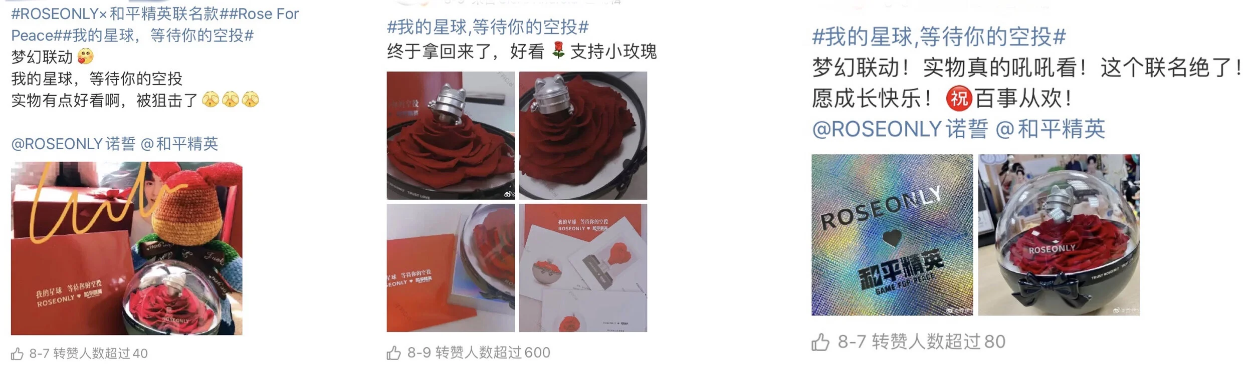Ivy Guan, Shanghai Office Manager: “Centred on Chinese Social Media App Weibo, Peacekeeper Elite and ROSEONLY is a great example of cross-market marketing, making note of the different demographics shared romantic feelings: "When Peacekeeper Elite's most precious materials, advanced equipment and drop boxes meet ROSEONLY’s classic cat doll and hot rose planet, the romantic gamer will receive the rewards of the battlefield in real life. Love has the ability to overcome all obstacles; whether it is a dangerous battlefield or unknown reality, let the "airdrop" loaded full of affection, reach your planet”.”