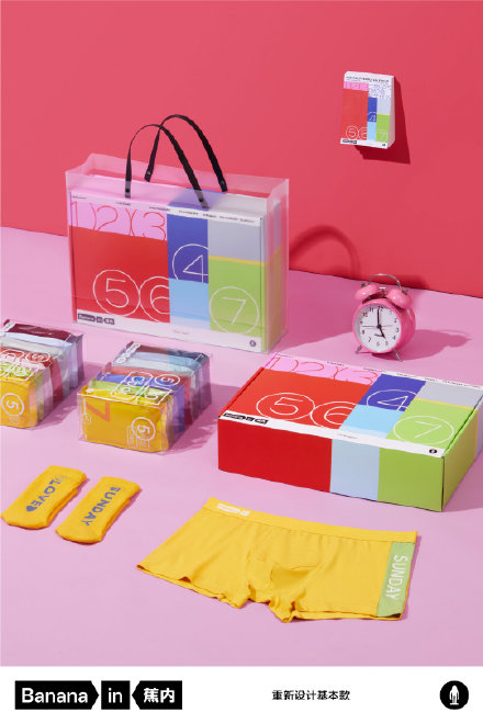 Bananain (蕉内), the Chinese underwear brand, celebrated Qixi with the launch of a limited edition gift box “ Weekly Pants”, containing seven underpants in different colours to be worn throughout a week.